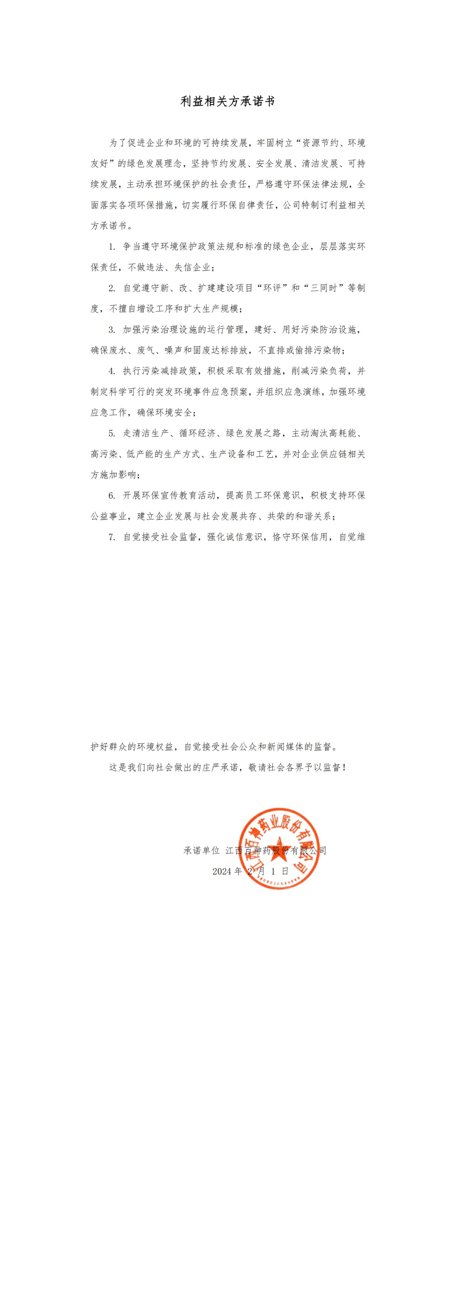利益相关方承诺书