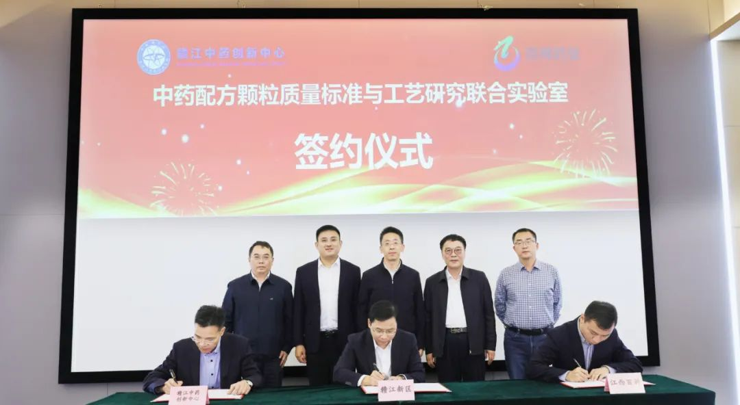 10月25日,江西百神药业股份有限公司与赣江中药创新中心携手共建的中药配方颗粒质量标准与工艺研究联合实验室在赣江新区签约并揭牌。赣江新区党工委副书记、管委会主任王万征,赣江中药创新中心主任梁鑫淼,江西百神药业股份有限公司董事长付诚讲话并共同为实验室揭牌。